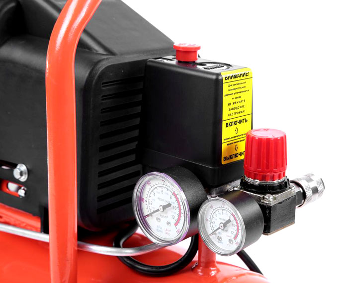 - Мощность 750 Вт. Компрессор быстро накачивает воздух в ресивер.