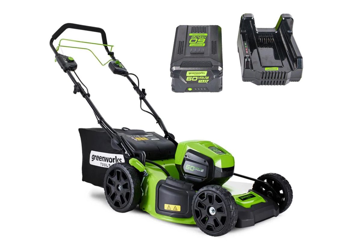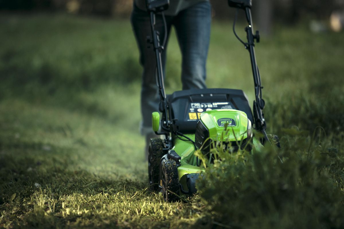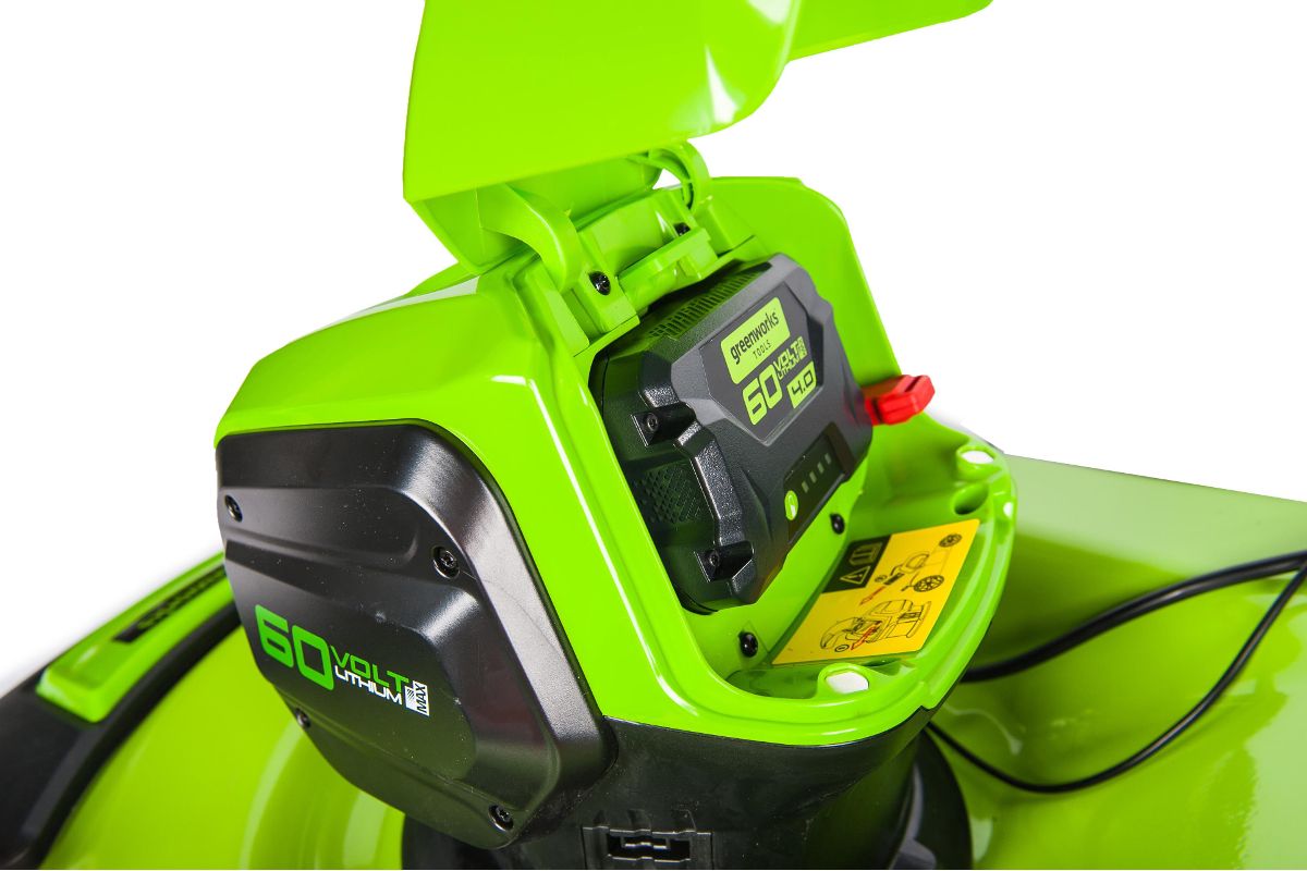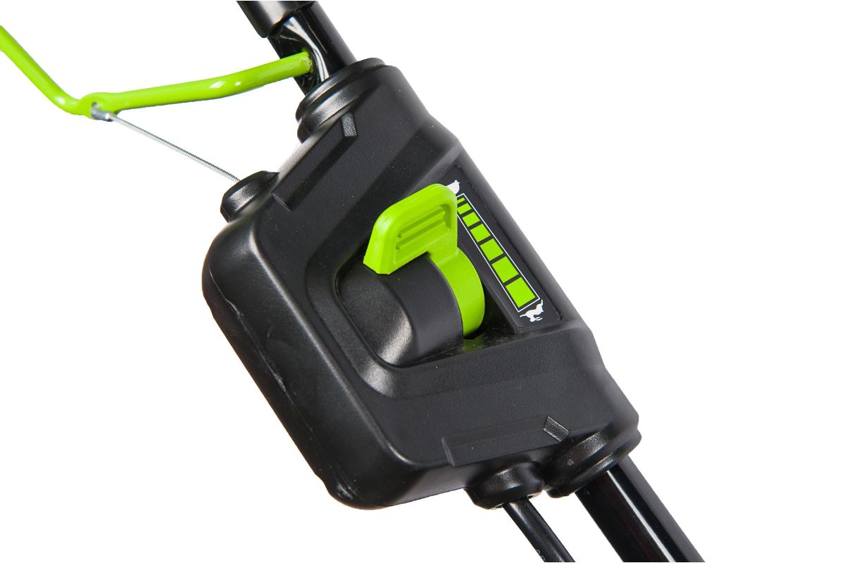 Мощность и обороты регулируются, в зависимости от нагрузки на нож, что кроме работы газонокосилки позволяет продлить время работы от аккумулятора. Для достижения оптимальных показателей в работе газонокосилки, в качестве аккумуляторов используются сборки из литий-ионных батарей емкостью 2 или 4 Ач.