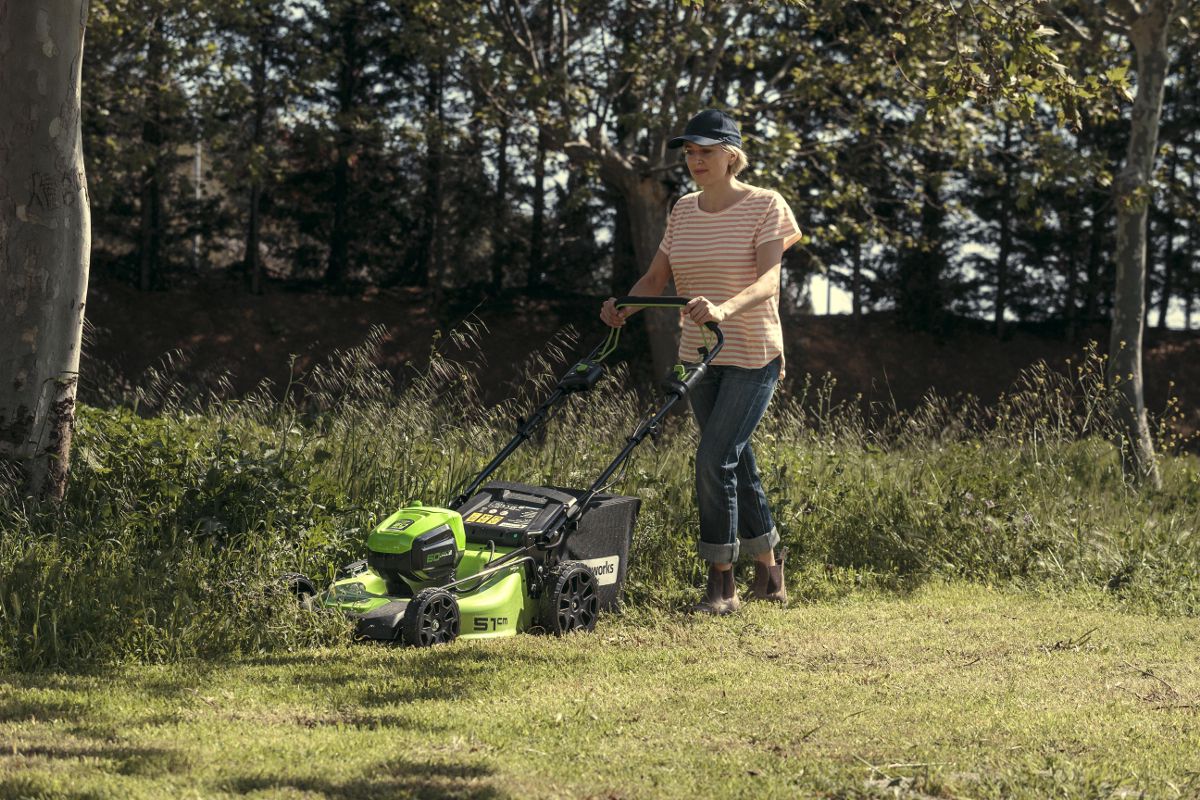 Аккумуляторная самоходная газонокосилка 60 В и ножом, диаметром 51 см. В газонокосилке низкий уровень вибрации, низкий уровень шума, в разы меньше, чем в бензиновых аналогах. Подходит для любого типа скашиваемой травы. На газонокосилке устанавлен бесщеточный мотор, самый надежный и экономичный тип электродвигателя.