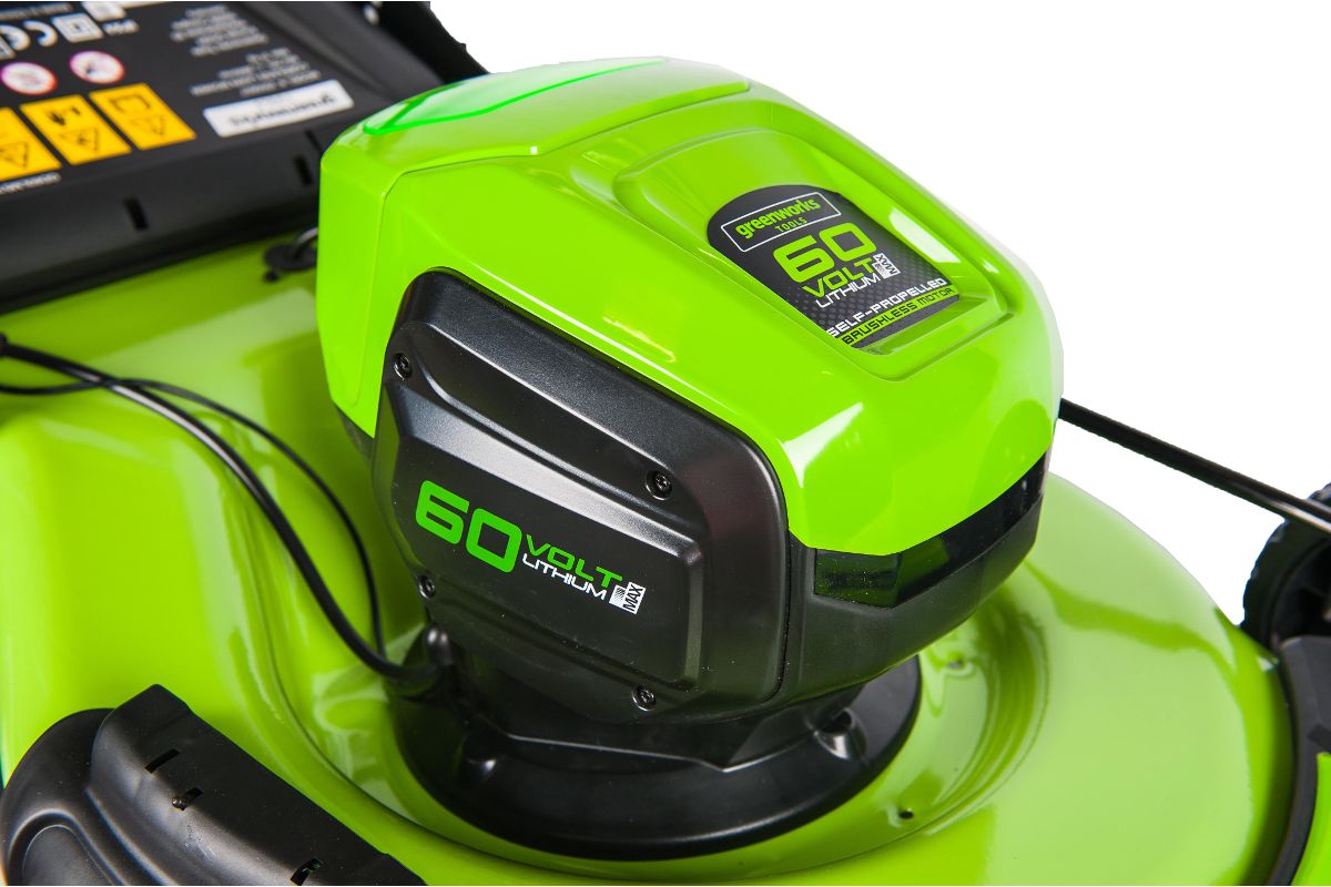 Максимальное время автономной работы составляет 60 минут от 4 А/ч батареи или до 600 м2. Косилка оснащается ключом безопасности для предотвращения случайных запусков. Ручка имеет складной механизм для экономии места при хранении. Аккумуляторная батарея 60V, используемая данной газонокосилкой совместима с другими устройствами Greenworks 60V.