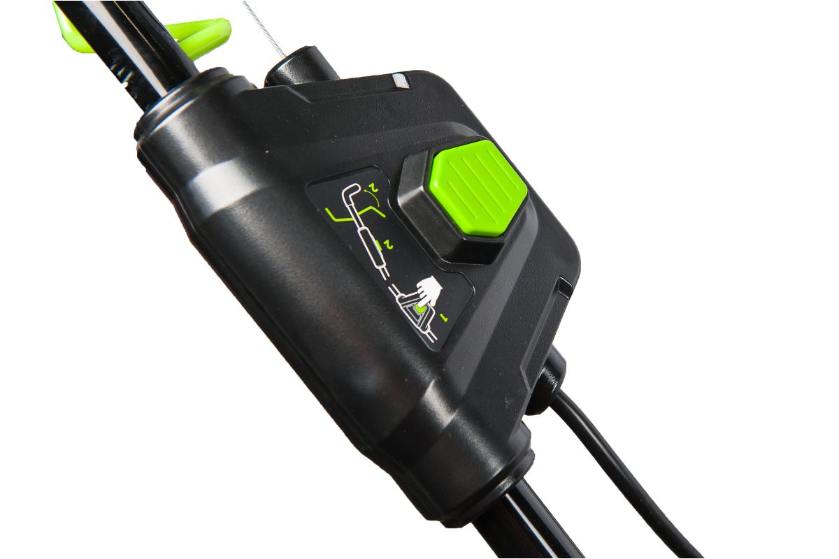 Двигатель полностью экологичен, отсутствуют вредные выбросы. Косилка имеет надежную металлическую деку шириной 51 см и ударопрочный корпус из ABS пластика. Она может работать в 3 режимах: мульчирование — измельчение состриженной травы и выброс ее на землю для питания растений, сбор в мешок-травосборник объемом 60 л и выброс вбок. Регулировка высоты скашивания имеет привод на все 4 колеса одновременно, то есть косилка поднимается параллельно земле. Диапазон регулировки имеет 7 уровней: от 20 мм до 80 мм. Для долговечной службы газонокосилка оснащена предохранителем двигателя от механических повреждений при столкновении с твердыми предметами.
