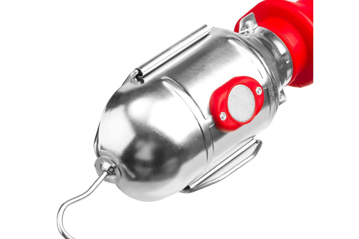 Удобная эргономичная рукоятка. Выключатель расположенный на ручке позволяет включать и отключать светильник. Компактные размеры и оптимальная длина шнура. Защитный кожух надежно оберегает лампу. Крючок для подвеса.